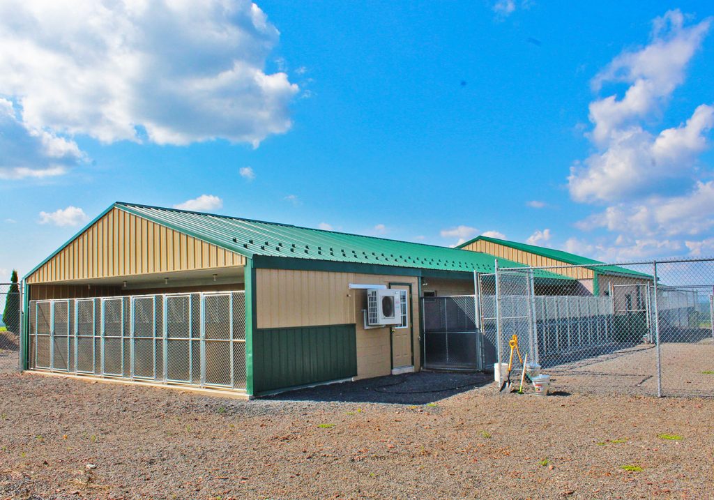 On the exterior we have 5 large fenced in paddocks to allow for proper exercise. Each paddock is cleaned regularly with our hospital grade disinfectant.Our dog hotel boasts large, pacious suites built to accommodate any dog’s size or special needs. Generous rooms allow plenty of space for family members to be placed together if desired. Each suite has indoor/outdoor access which allow dogs to come and go as they please. For total coziness, rooms also have a radiant heat and cooling system in the flooring. All outdoor runs are located under roof with built in fans that account for warmer weather.
